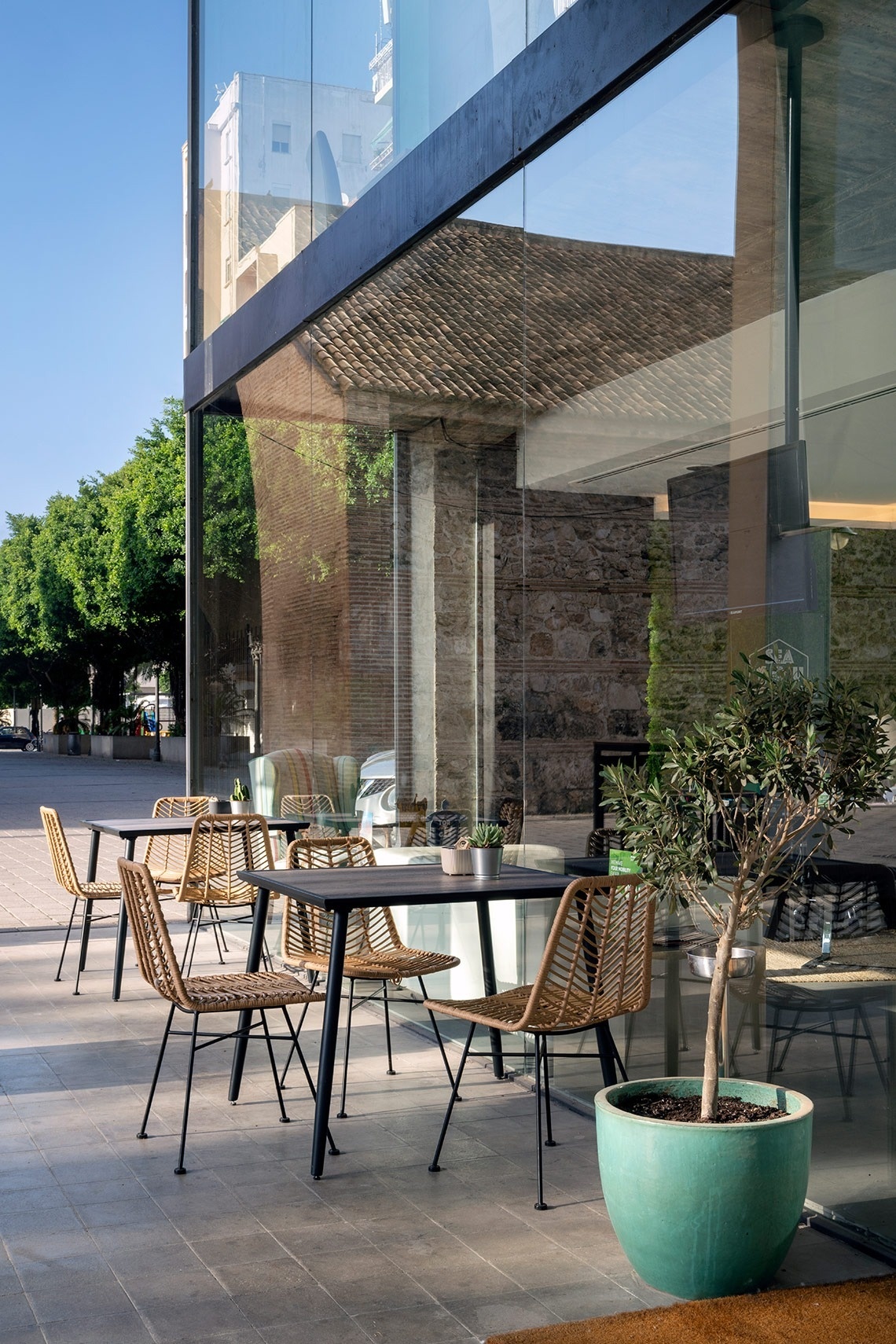 Sie können einen Aperitif auf der Terrasse am Eingang des Hotels genießen oder das Restaurant im 1. Stock betreten, wo Sie unsere köstliche Küche probieren können.