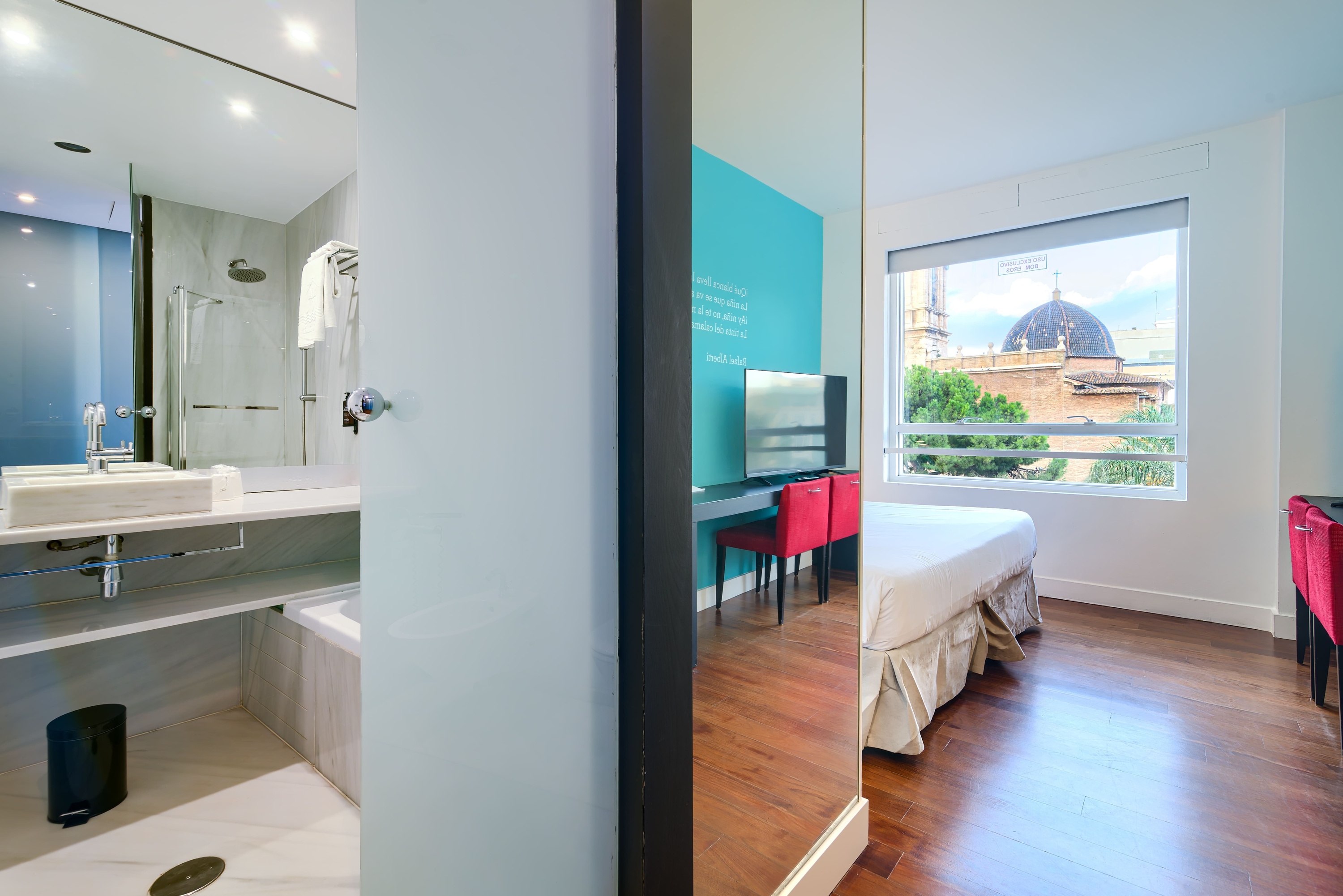 Ausgestattet mit geräumigen, hellen und komfortablen Zimmern, die über alle Annehmlichkeiten für einen angenehmen Aufenthalt verfügen. Alle Zimmer verfügen über eine Minibar, einen Safe, eine Klimaanlage, kostenloses WLAN, Hydromassage in den Badezimmern und eine wunderschöne Aussicht auf die Plaça del Tribunal de les Aigues oder die Reales Atarazanas.